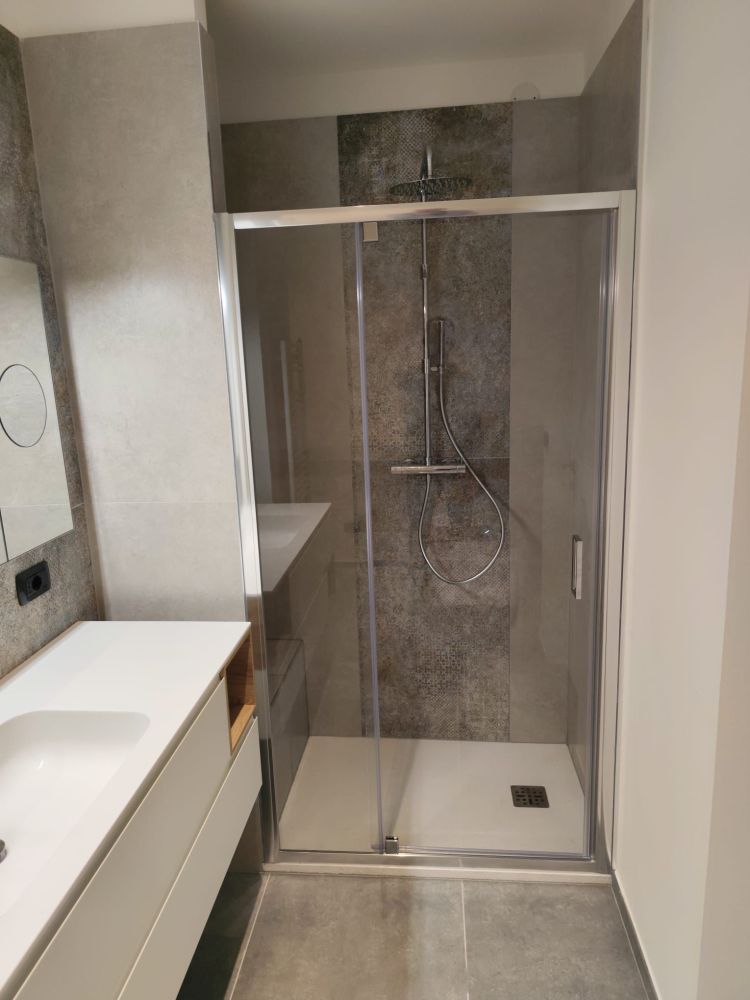 Il progetto ha previsto una riprogettazione completa degli spazi, con la sostituzione della vasca tradizionale con una doccia ampia e realizzata su misura. Protagonista dell’intervento è la nuova doccia con seduta in muratura, studiata per garantire comfort, sicurezza e durata nel tempo. La seduta, perfettamente integrata nella struttura e rivestita in continuità con le superfici circostanti, non rappresenta solo un elemento funzionale, ma anche un dettaglio estetico di grande impatto, capace di conferire personalità e carattere all’intero ambiente.